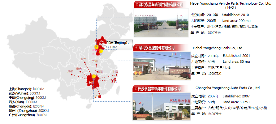 长沙永昌成立于2007年,是有着近20年历史的湖南省专业研发、生产中高档乘用车密封条、胶管系列产品的高新技术企业,公司注册资本2000万元,厂区位于湖南浏阳经开区,占地3.4万平方米,具有自营进出口权。致力于同步开发和稳健过程能力建设,持续为客户提供优质的产品和服务。