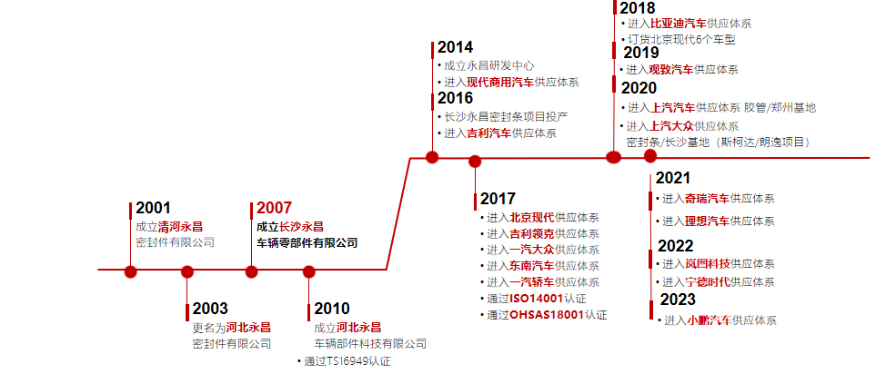 公司始终以“百年永昌,持续为社会发展贡献力量”为企业愿景,秉承着“持续引领密封技术,提升驾乘体验”的企业使命,坚持“以客户为中心、实事求是,开拓进取”核心价值观及“诚信、创新、专业、共赢”经营理念,力争成为汽车零部件密封条与胶管细分领域中头部企业。展望未来,永昌将继续致力于打造更优质的产品,为客户提供更满意的服务。我们始终相信,在追求卓越的道路上没有终点,为了更美好的明天,永昌愿与您携手共进,永立潮头、昌盛久恒!